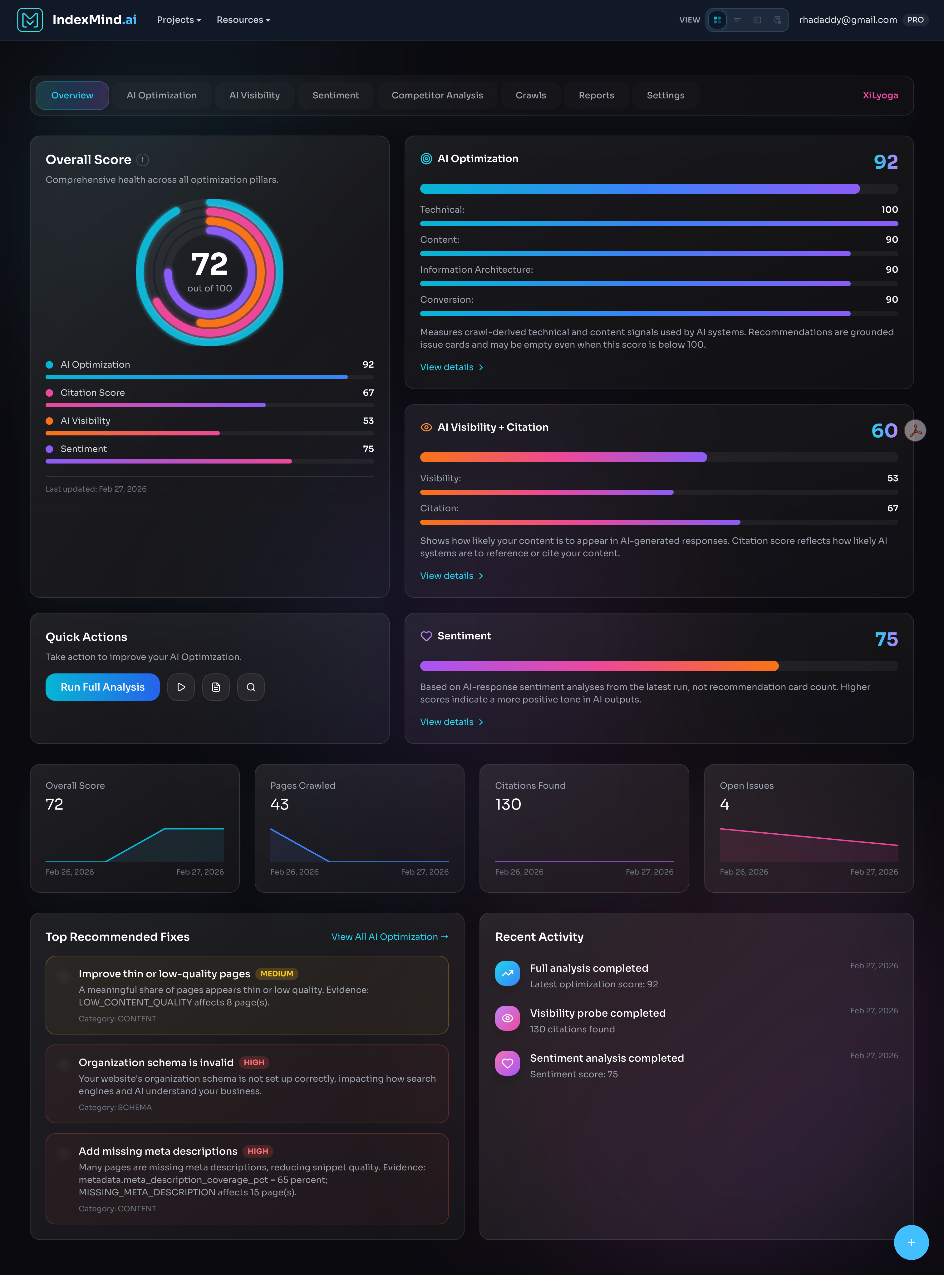 IndexMind transitioned from idea to production-ready platform. The product gained a stable foundation, clearer value proposition, and a path for iteration without constant rework.